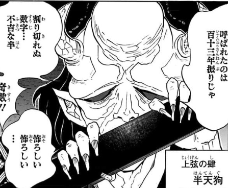 100年数ぶりに上弦の鬼が倒されたことで、無惨が上弦の鬼を緊急招集し会議兼説教をするよ。 ここで残りすべての上弦の鬼が明かされるよ。次のページから全ての上弦の鬼を紹介するけど、上弦の参(さん):猗窩座(あかざ)より手前はもう生きていないから飛ばしてもいいよ