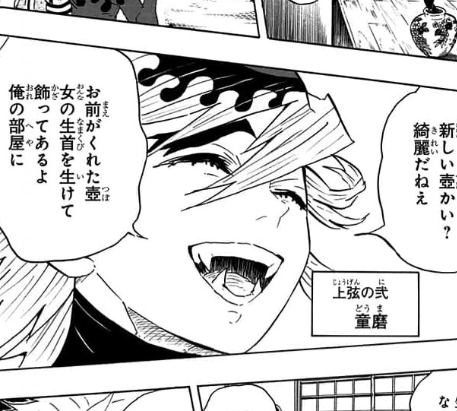 表向きは新興宗教の教祖だよ。飄々としているけど、めちゃ強いよ。猗窩座と打って変わってとにかく女性を喰うことに執着しているよ。